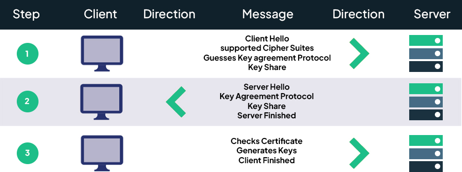 - Faster handshakes: Reduces latency by requiring just one round trip between client and server.