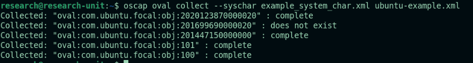 oscap oval collect –syschar example_system_char.xml ubuntu-example.xml